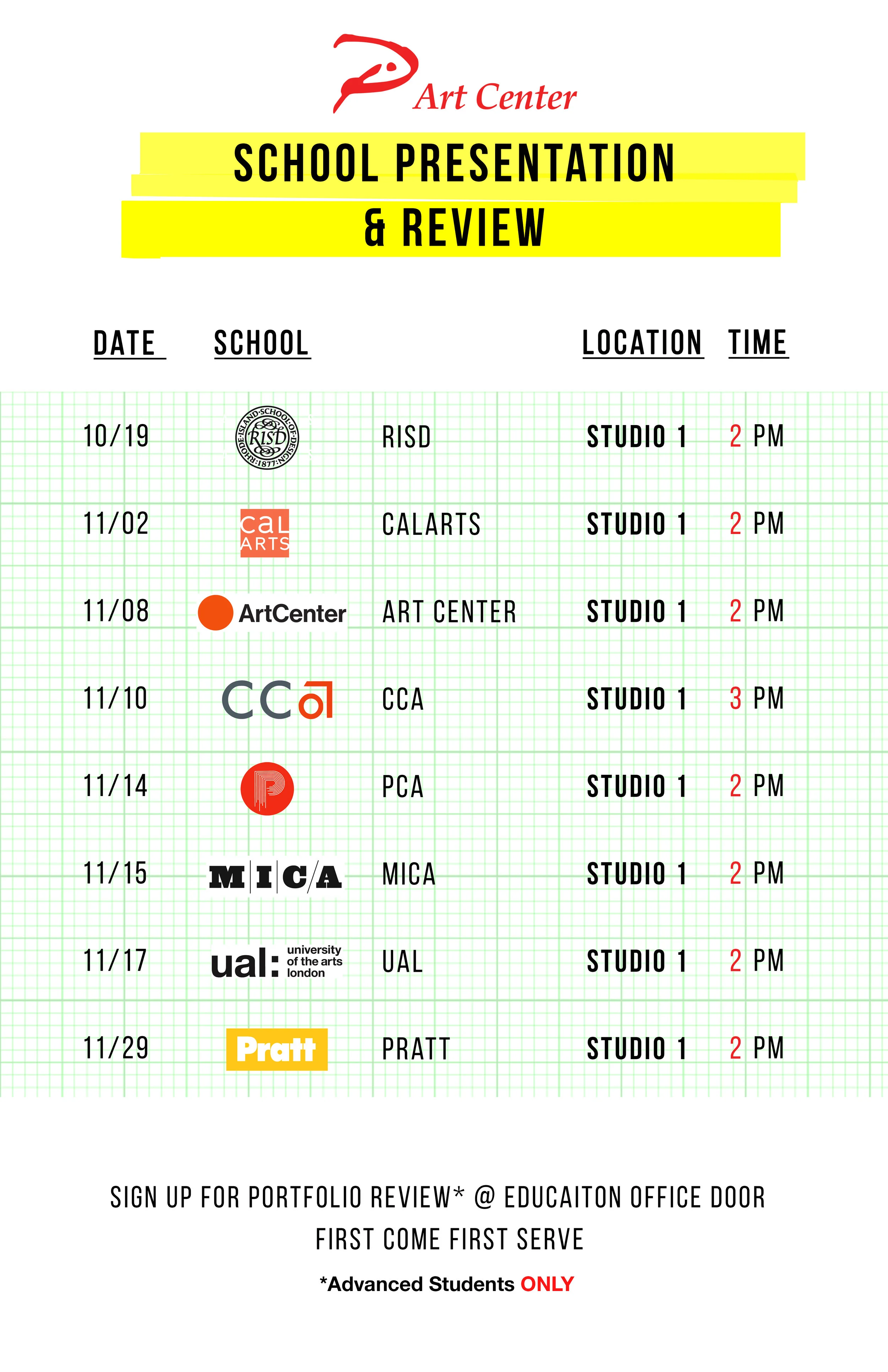 先日、アメリカ全土の一部の名門アート大学による大学説明会とポートフォリオレビューが一通り終わりました。